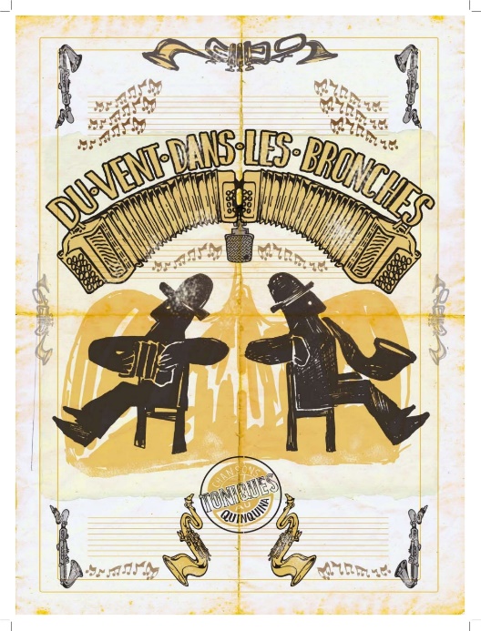 « Du vent dans les bronches » un duo rétif aux étiquettes, pas familier des codes-barres, un duo inclassable, des compositions originales, perles du répertoire français malicieusement détournées. « Du Vent dans les Bronches », deux comparses tiraillés entre réalisme et fantaisie qui laisse la part belle aux textes, le hautbois et le saxophone répondent aux voix, à l’accordéon et à la guitare dans un climat où le burlesque se teinte de tendresse, où l’indignation est toujours présente derrière l’humour bonhomme, où la mélancolie un instant effleurée s’échappe dans un éclat de rire. Que du bonheur !